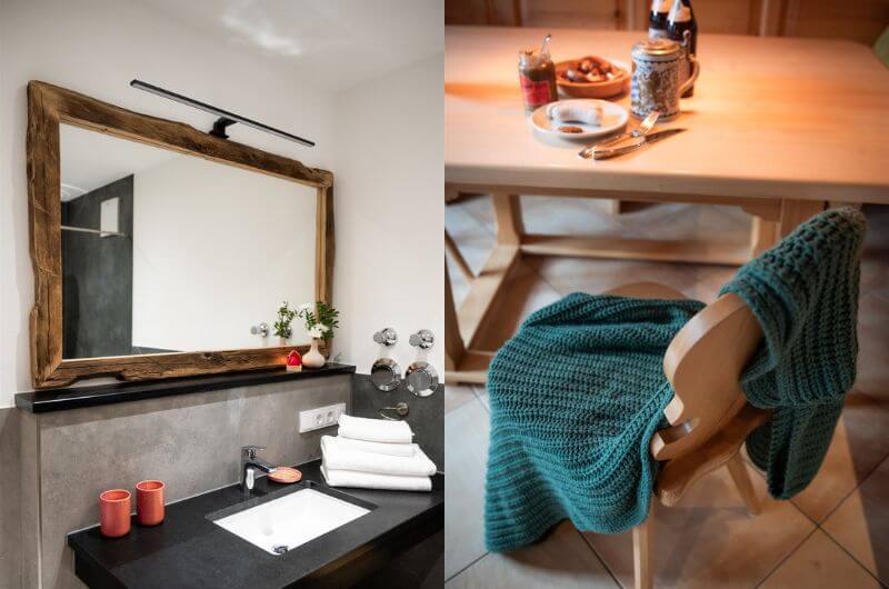 • Nachhaltige Bauweise: Auf dem Bussjägerhof wird überwiegend mit Holz gearbeitet und dieses kommt natürlich aus dem eigenen Wald. Die Möbel wurden überwiegend vom Schreiner mit hofeigenem Holz gezimmert.