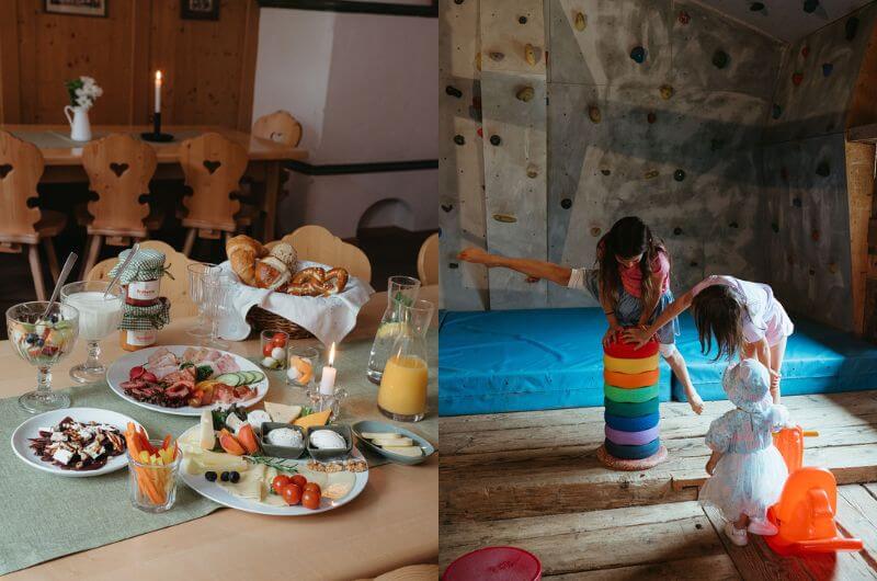 • Frühstück: Von September - Pfingsten könnt ihr das Schlemmerfrühstück dazu buchen. Dann werdet ihr verwöhnt mit ofenfrischen Brezen und Semmeln, reichhaltigem Käse- und Wurstangebot, selbstgemachtem Joghurt, Müsli, selbstgemachter Marmelade, Frühstückseiern, Kaffee, Tee und Kakao, Saft und immer wieder eine kleine Überraschung.