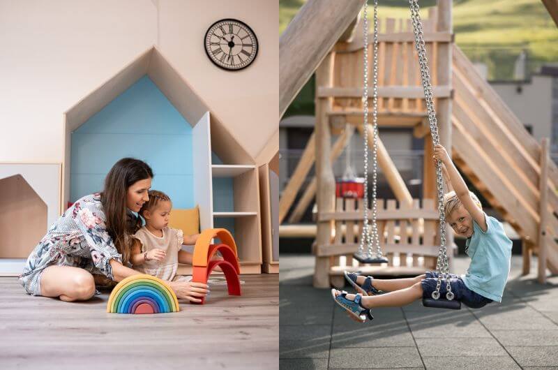 • Größtenteils plastikfreie Spielzeuge im Indoor-Bereich